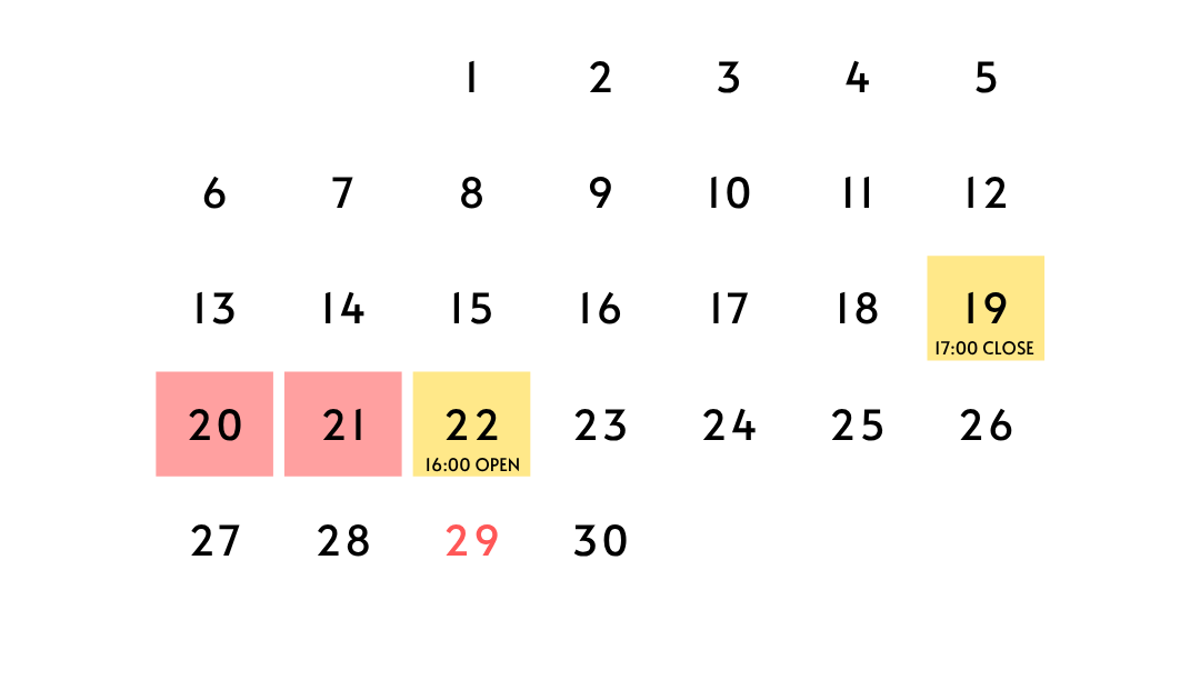 4月の営業予定です。 4月は全壁面のルートセットを、4/20-21に行います。それに伴い、時短営業日、臨時休業日があります。 【時短営業日】4/19(日)10:00-17:004/22(水)16:00-23:00 【臨時 […]